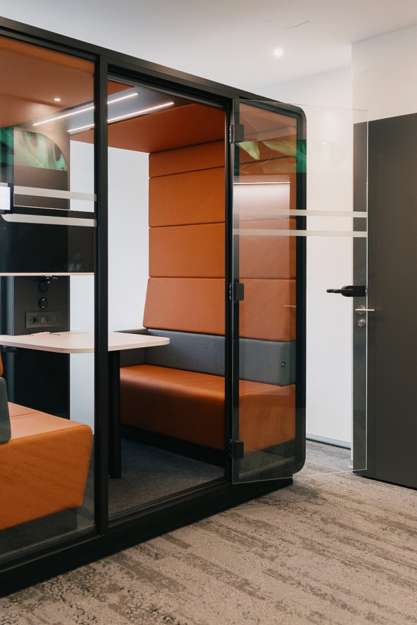 Im Borama Rent Projekt wurden zwei Mikomax Kabinen installiert, die mit hybrider Medientechnik ausgestattet sind. Diese Kabinen verfügen über Displays, Kameras, Soundsysteme und Mikrofone, die eine hervorragende Audio- und Videoqualität bieten. Sie sind ideal für Videokonferenzen und bieten eine abgeschirmte Umgebung, die konzentriertes Arbeiten ermöglicht.